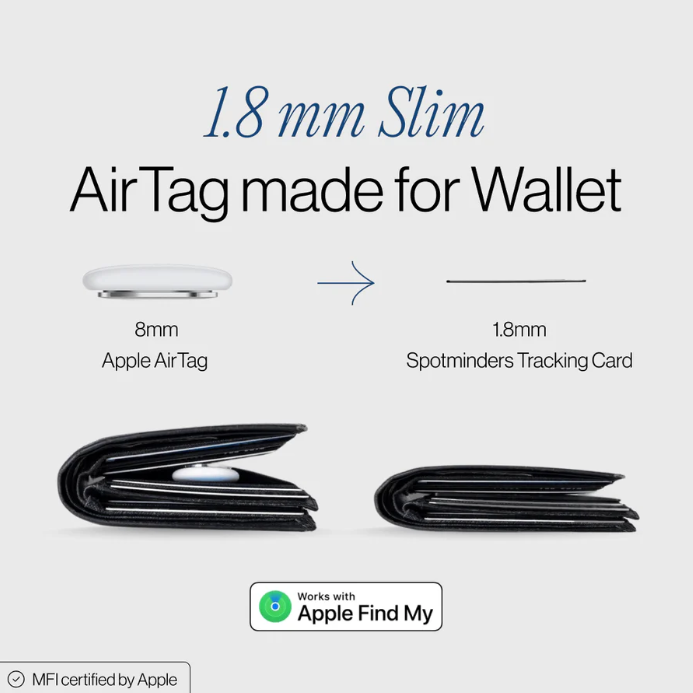 Designed in California, the Vaultron - Spotminders Tracking Card seamlessly integrates with Apple Find My.